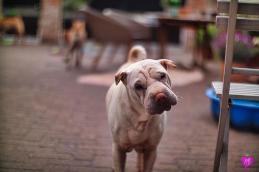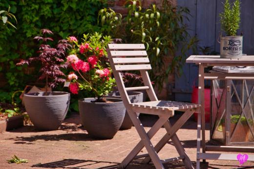 Neelix schaut einer Biene ganz genau in die Augen. Schnappschuss. Denn eigentlich hatte ich die Schärfe Ebene auf die Blumentöpfe eingestellt, sonst wäre die Biene "gestochen" scharf gewesen. So ist die Biene leider etwas unscharf.