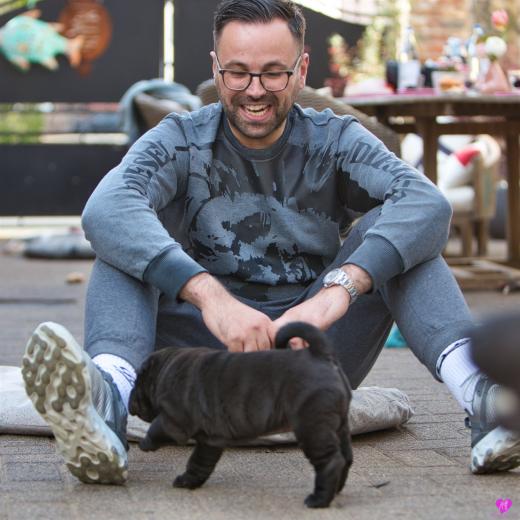 So klein und schwarze war Awi auch mal. Als "schwarzes Schaf" neben den vier hellen C-Wurf Welpen :-)
