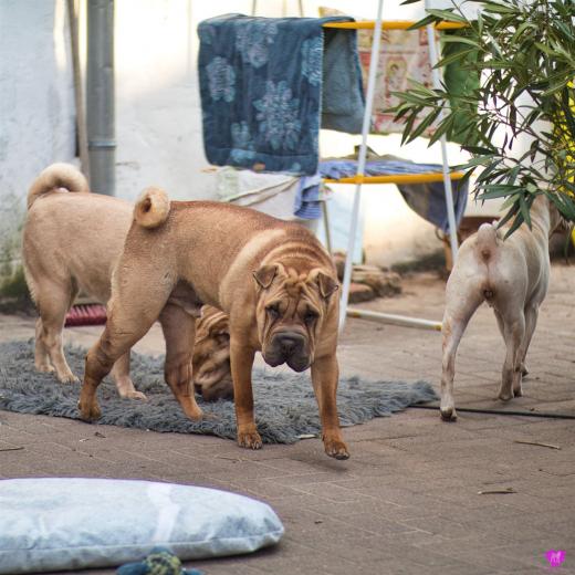 Den Hunden scheint das "Stay at Home" sehr gut zu gefallen. Selten gehe ich nur mal kurz einkaufen und bin direkt wieder zurück. Kein morgendlicher "Geh-zur-Arbeit" und "Komm-von-der-Arbeit" Stress mehr. Das Rudel ist unfassbar gut gelaunt und chillt den ganzen Tag auf dem Hof. Die Welpen wachsen und gedeihen weiter und machen uns sehr viel Spaß. Sie sind jetzt sehr mobil und schon recht flott unterwegs. Können sich jetzt jetzt selbst versorgen und trinken Bio-Heu-Ziegen Milch schon ganz alleine.