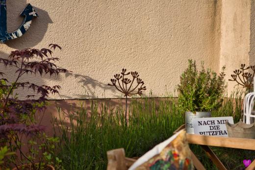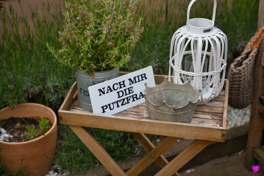 Die doofen Spatzen nerven ihn. Wollen genau über der Bank oben am Dach ein Nest bauen.