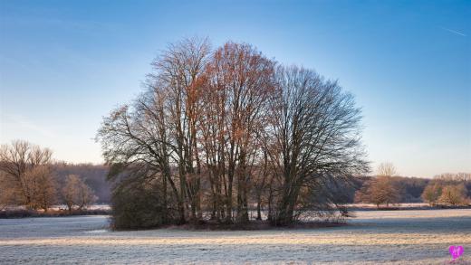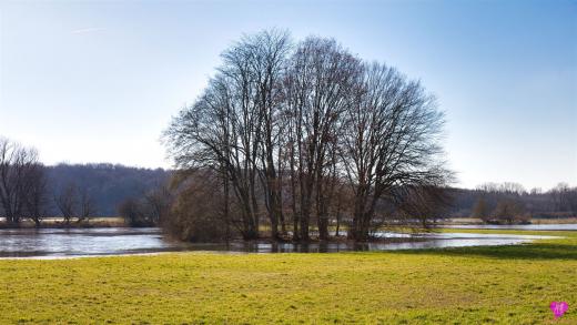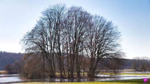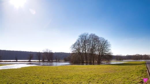 Früh Morgens vor der Arbeit an unseren Auwiesen mit Tau auf den Wiesen.