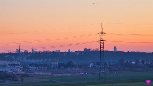 Dann in Bad Vilbel ein paar Fotos aus dem Büro - Richtung Heimat - geschossen und abends den Sonnenuntergang Richtung "Frankfurt hinter dem Berg" aus dem Büro festgehalten.