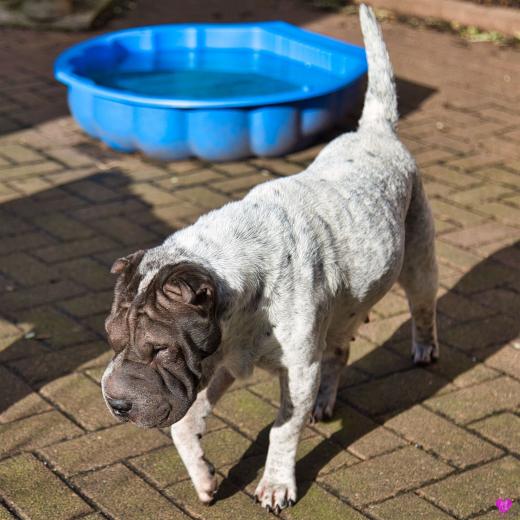 Am Wassernapf, der gelegentlich von Lucy für Kneip-Bäder genutzt wird (Bewegungsfolge).