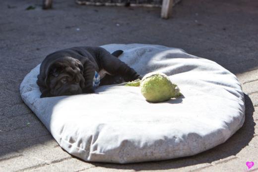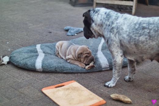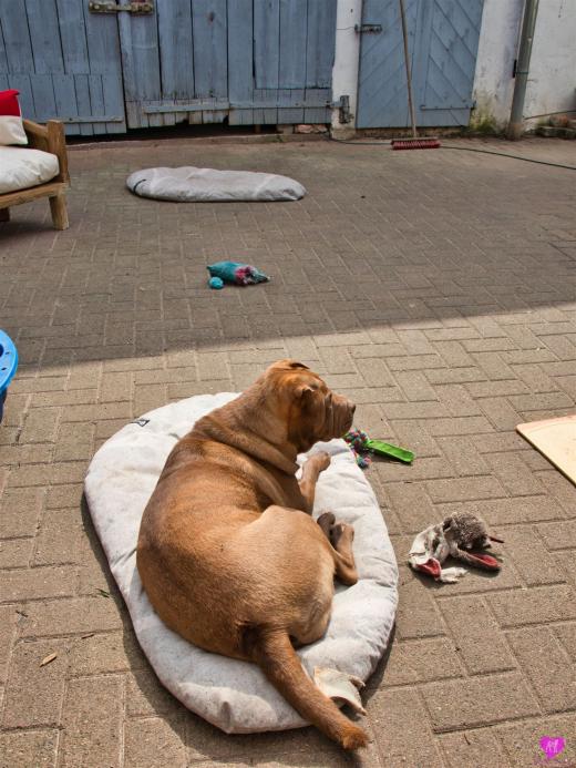 Mit sommerlichen Temperaturen von bis zu 26 Grad in der Sonne hatten wir viel Spaß im Hof und im Garten. Zum Glück ist unser Hof immer zeitweise im Schatten, so das die Welpen das tolle Osterwetter auf dem Hof genießen konnten. Es sind jetzt schon richtige kleine Hunde. Sie erkunden neugierig die Welt und sammeln ihre Erfahrungen mit unseren doch sehr charakterlich unterschiedlichen Hunden im Rudel. Das ist für die Sozialisierung so wichtig.