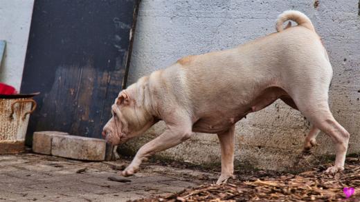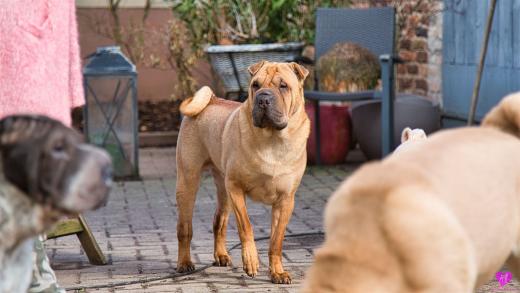 Die bewegt sich sehr viel, obwohl in den nächsten Tagen die Welpen kommen.