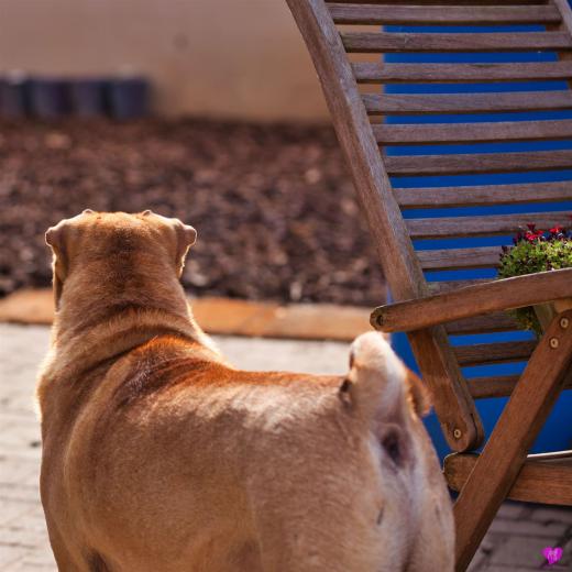 Wieder auf seinem Lieblingsplatz. Die Bank am Tor.