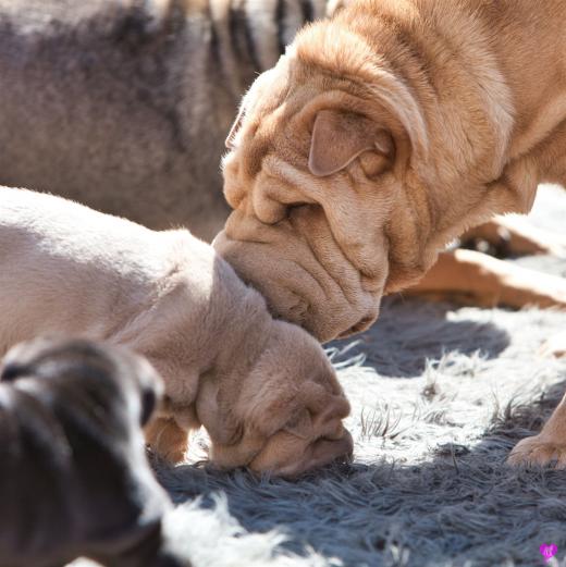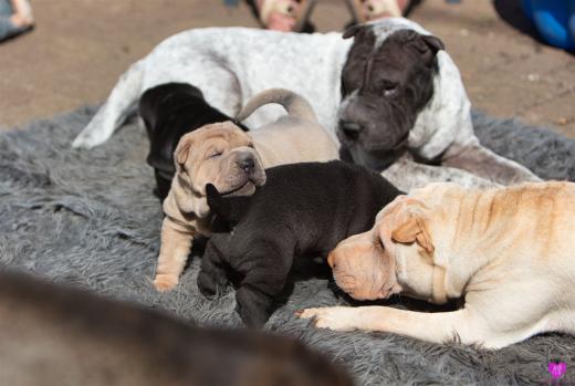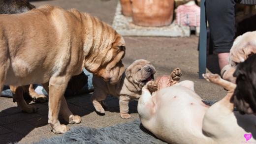 Titelbild: "Mini Hamster greift an". Es ist immer wieder unfassbar wie sich so kleine erst vier Wochen junge Welpen ins Rudel integrieren und von allen für voll genommen werden. Faszinierend.