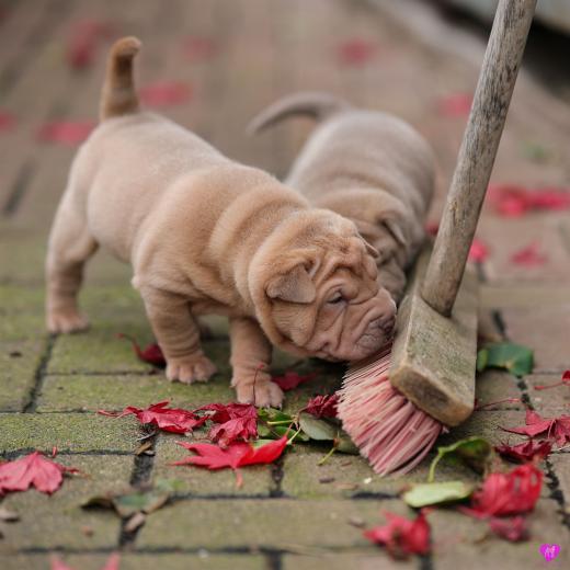 Welpen Freilauf auf dem Hof. Die sind schon ganz schön mobil und agil. Kleine, freche Bande. Die ganzen herbstlichen Blätter auf dem Hof fanden sie alle sehr interessant.