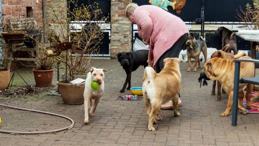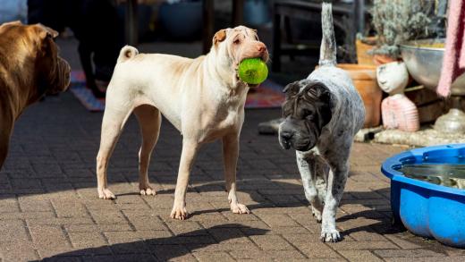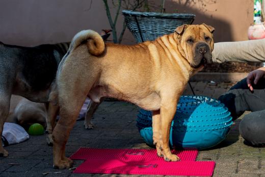 Der Frühling scheint da zu sein. Die Hunde freuen sich, wie jedes Jahr. Überschwänglich wird getobt auf dem Hof und im Garten. Andrea hat Physiotherapie Bälle und Matten gekauft, um mit Holly nach ihren beiden Bänderriss OP fleißig zu trainieren, was auch sehr gut klappt. Man merkt kaum noch etwas, sie ist schon wieder so agil wie früher. Die anderen Hunde machen alle mit. Sie finden das spannend und außerdem gibt es hier und da ein Leckerlie zur Belohnung.