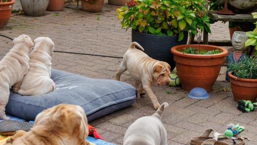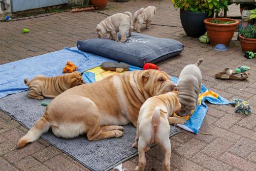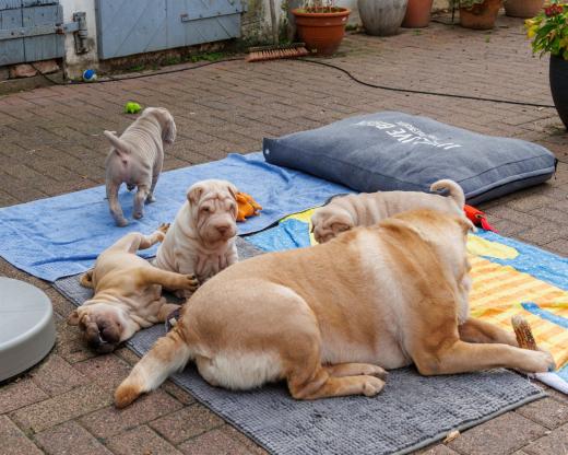Wir hatten hier nochmal wirklich Glück mit dem Wetter heute., so dass sie fast den ganzen Tag draußen verbringen konnten. Die kleinen Racker halten uns gut auf Trab, viel Ruhe ist nicht mehr. Die Kleinen haben sich alle ganz toll ins Rudel integriert und sozialisiert. So schnell wurden aus den kleinen Würmern fertige Hunde.