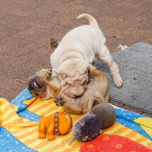 Am Montag geht es dann zum Tierarzt: Microchip, Impfung, Wurmkur und allgemeine Wurfabnahme. Und dann zieht nach und nach ein Welpe nach dem anderen aus, bis auf Lev, der bei uns bleibt.