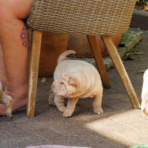 „…und dieses possierliche Tierchen nennt man einen seltenen zwigeschwänzten, achtfüßigen Doppelkopf Janus Pei. Eine ganz seltene Unterart…“