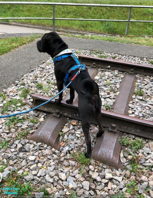 Manchmal machen wir das auch im Training: Da wird ein Parcours mit verschiedenen Stationen aufgebaut, da gibt’s so Dinge wie Sitz-Platz-Sitz, Slalom Laufen, Kehrtwende, am Leckerli vorbei (überhaupt kein Problem) einmal ums Hütchen rum quer über das Quietschebällchen gestieg... moment... Quietschebällchen?! Bin gleich wieder da...