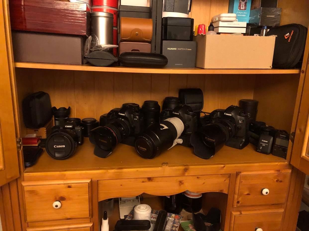 Als nächste aus der Canon 5D Serie kaufte ich die CANON EOS 5DS-R mit 50 Megapixeln. Extrem viel Auflösung, aber eigentlich für den Studio Einsatz gedacht, weil aufgrund der hohen Auflösung schnell Bewegungsunschärfe ins Bild kam, wenn die Verschlusszeiten nicht kurz genug waren. Also mussten deutlich lichtstärkere Objektive her. Mit der EF Trinity L-Serie von Canon (alle f/2.8) war das Zusammenspiel mit der 5DS-R dann auch perfekt. Irgendwann konnte ich sehr günstige eine 5D Mark 3 mit 22.3 Megapixeln dazu kaufen, die "kleine" Schwester der 5DS-R, mit 100%tig identischer Bedienung wie die 5DS-R und nur unwesentlich verbessertem Sensor zur 5D Mark 2.