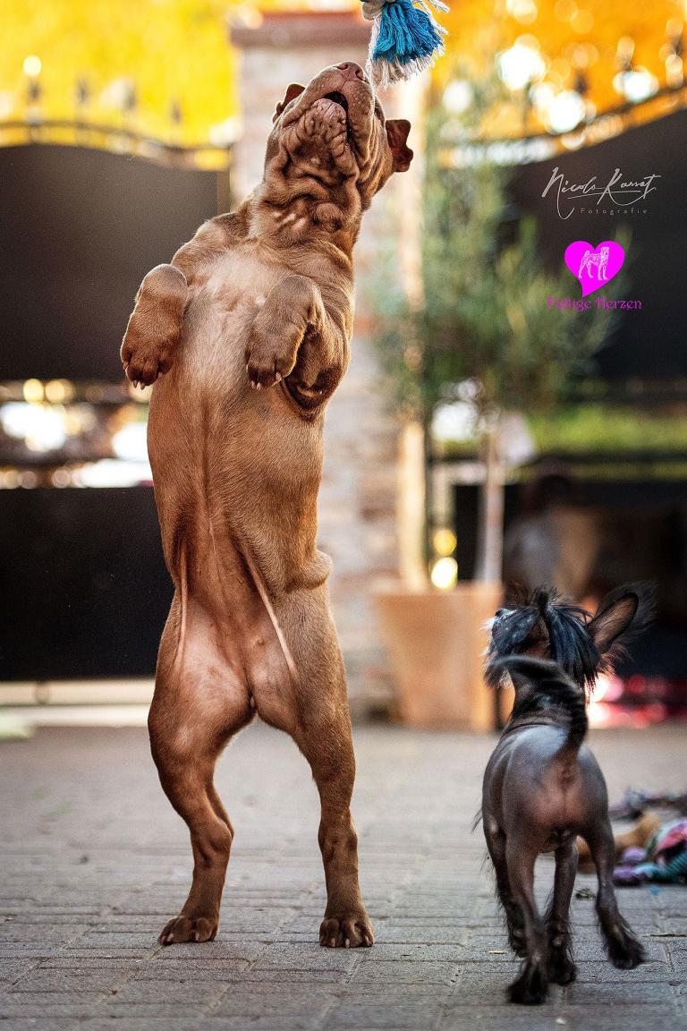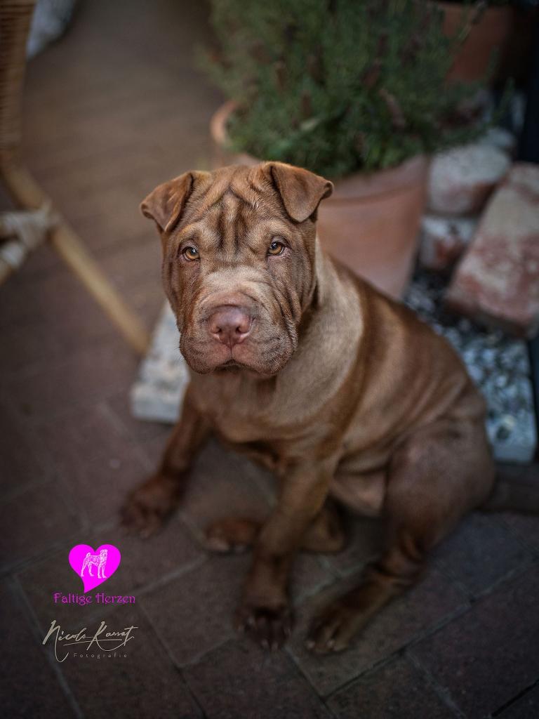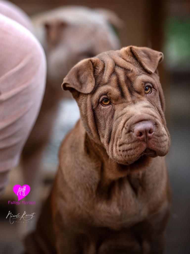 Lucy haben wir aus der Zucht von von Sabina Schumann, die in Österreich ein Gestüt mit Ferienwohnungen und eine Shar Pei Zucht betreibt. Sie war für ihr Alter unglaublich gut sozialisiert und hatte vor überhaupt nichts Angst oder fühlte sich trotz des Umzuges sofort bei uns wohl. Überhaupt ist sie die kommende Rudelchefin. Sie ist eine sehr selbstbewusste Hündin, die sehr in sich ruht. Sie ist eine tolle Hündin mit viel Potential für die Zucht zumal ihre Eltern eine sehr gute Gesundheit vorweisen können und frei von Shar Pei Fieber sind. Bei einer kommenden Zuchtprüfung von Lucy wird sich noch herausstellen, ob Lucy eventuell N/N sein wird, die Wahrscheinlichkeit ist mit 75% dafür sehr hoch.