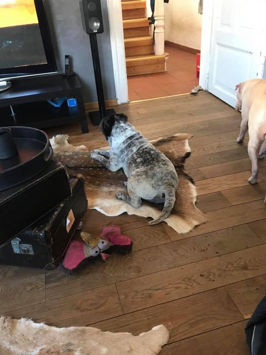 Fühlt sich von Anfang an wohl bei uns. Und liebt die Rehfelle.