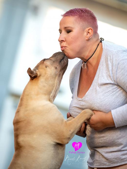Ella ist 1,6 Jahre alt und ganz zauberhaft. Ella kommt leider nicht gut mit ihrer eigenen Läufigkeit und der Läufigkeit unseren anderen Mädels so wie Trächtigkeit zu recht. Sie reagiert da leider gelegentlich etwas über, was dann zu Zusammenstößen der Hunde führt. Nach dem letzten Vorfall von Ella lehnt das gesamte Rudel unsere schöne Maus leider komplett ab. Seit über 6 Monaten fällt es Ella immer schwerer, sich in das Rudel einzufügen und ihren Platz zu finden. Nach vielen Gesprächen mit unserem Tierarzt so wie Hundetrainer haben wir schweren Herzens beschlossen, uns von Ella zu trennen. Da weder sie noch das Rudel glücklich ist. Ella braucht den Menschen und bindet sich nicht so sehr an andere Hunde. Der perfekte Platz wäre Einzelhaltung ohne weitere Hunde und wenn dann eher mit einen kastrierten Rüden. Ella ist ein sehr sportlicher Hund. Sie läuft toll an der Leine und wenn man eine enge Bindung aufbaut, läuft sie auch ohne Leine und ist toll abrufbar. Ella ist kerngesund da sie ja eigentlich bei uns in die Zucht gehen sollte. Alle Untersuchungen sind Befund frei und auch die Zucht Prüfung hat sie mit Bravour bestanden. Ella sollte sterilisiert werden damit sie nicht in der Läufigkeit so viel Stress hat. Ella kann alleine bleiben sofern sie in einen gesicherten Garten kann, was aber nicht zu lange sein sollte. Auch kann sie toll mit ins Büro auf die Arbeit. Ella versteht sich mit allen Menschen groß wie klein und ist sehr anhänglich und verschmust. Sie benötigt viel liebevolle Zuwendung, die sie auch gerne mal auf ihre sehr charmante Art einfordert.