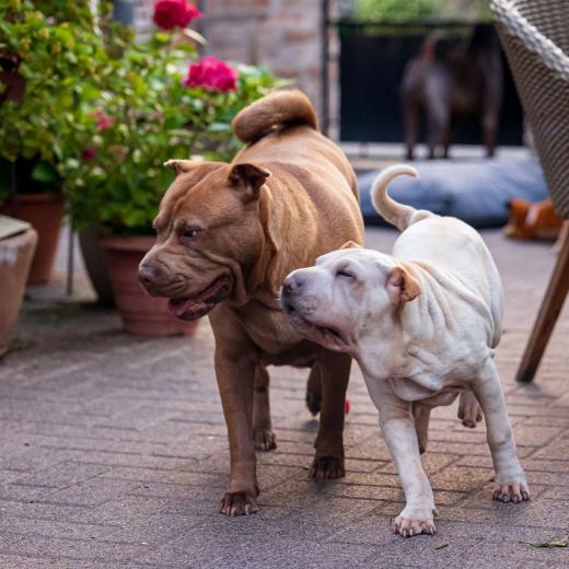 Da Mathilda in Rente geht und Holly sowieso nicht für die Zucht gedacht ist, haben wir bei Sabina Happy Love aus Österreich geholt. Sie ist ist immer fröhlich+freundlich und sehr sportlich. Ins Rudel hat sie sich sofort integriert und ihren Platz gefunden. Sie spielt viel mit allen Hunden ohne Ausnahme, sogar unseren "alten" Cooper konnte sie zum Spielen erfolgreich auffordern.