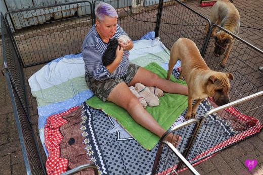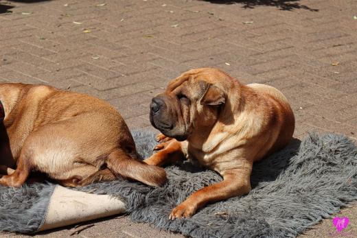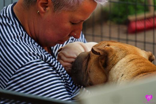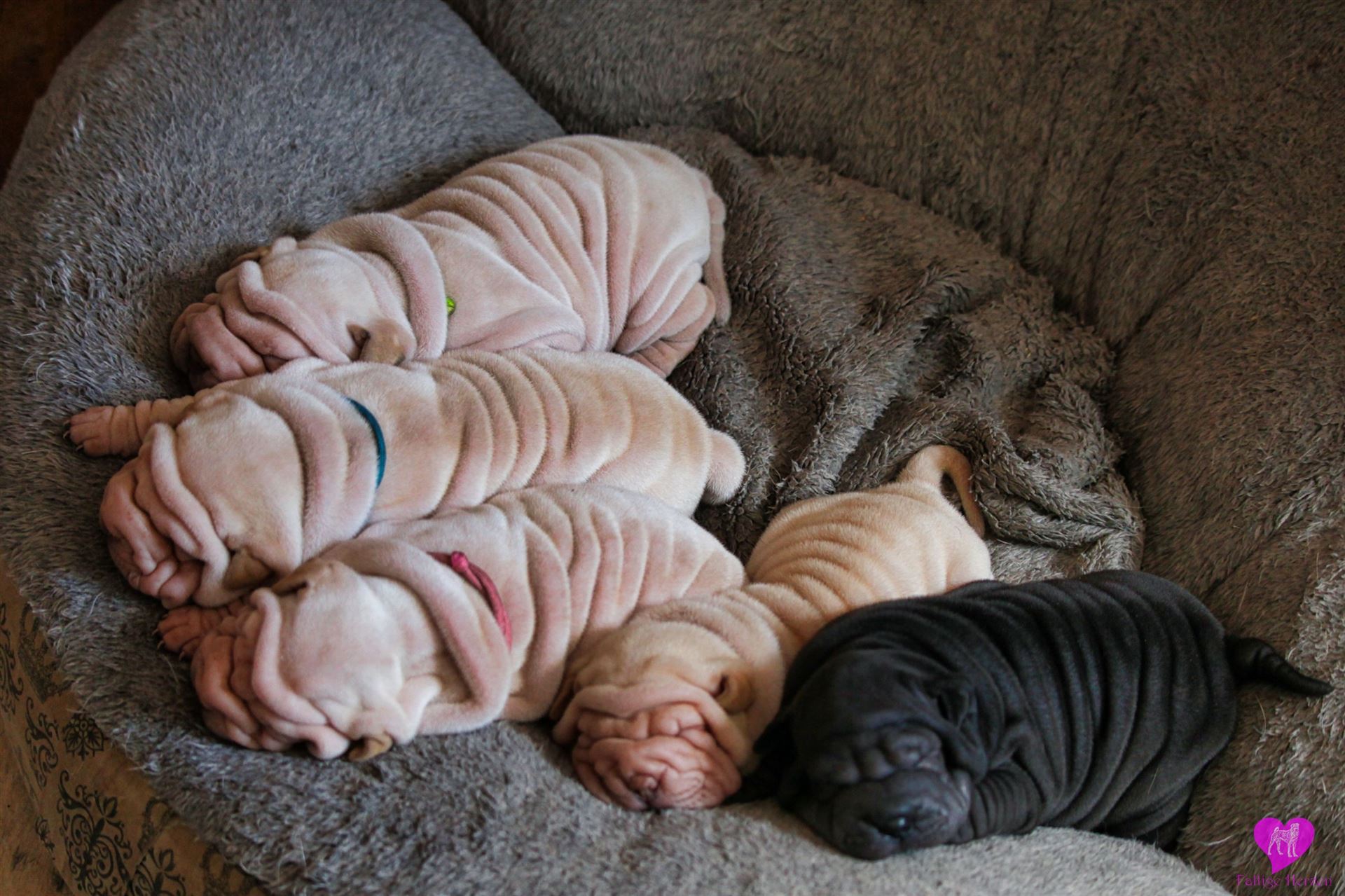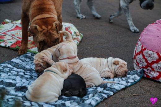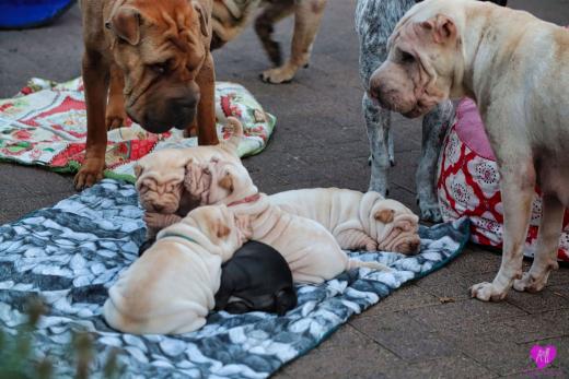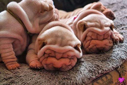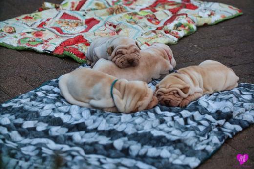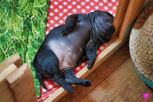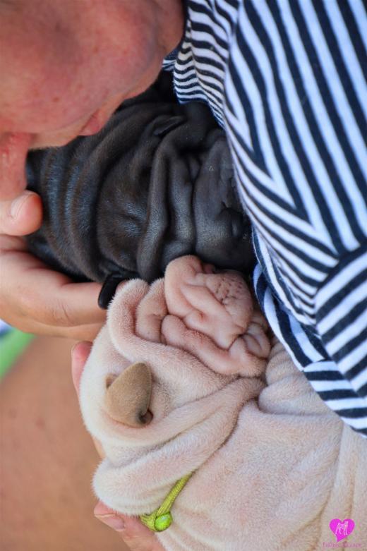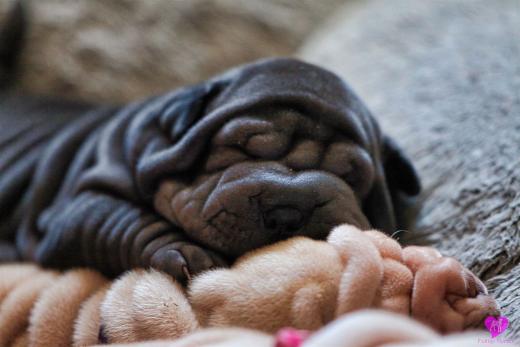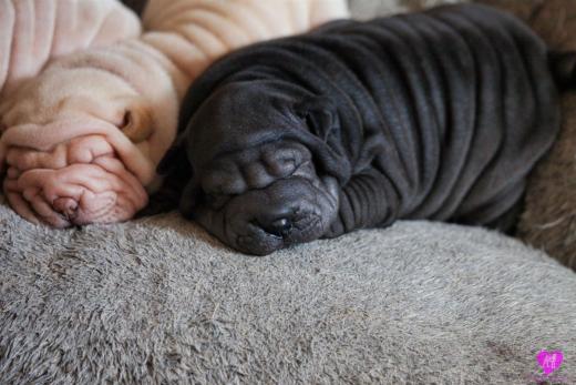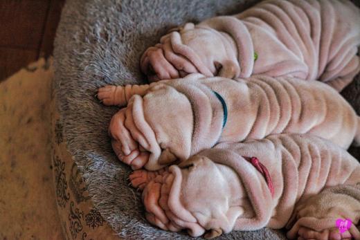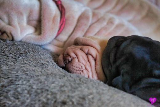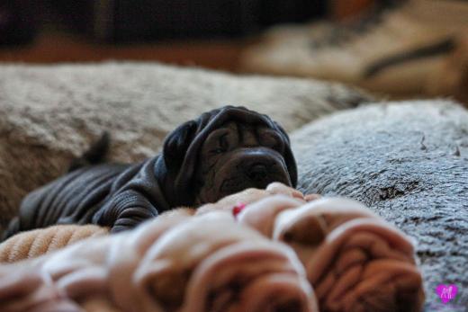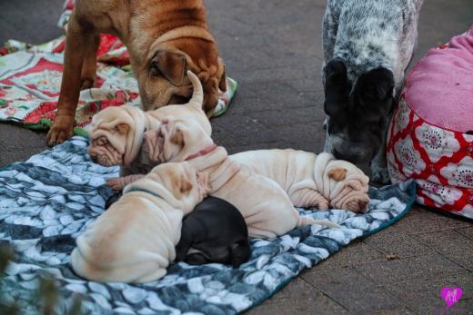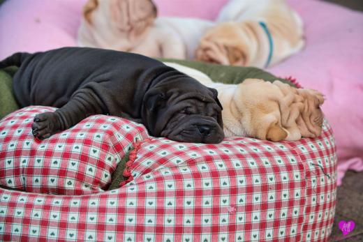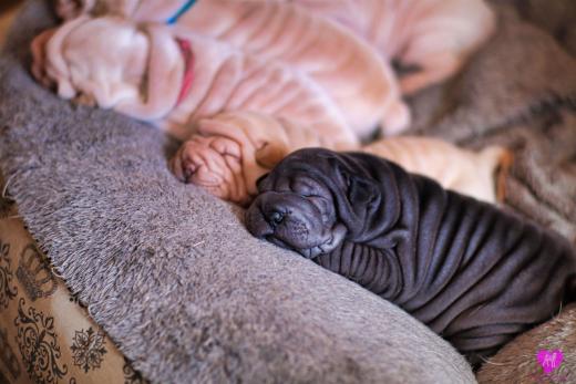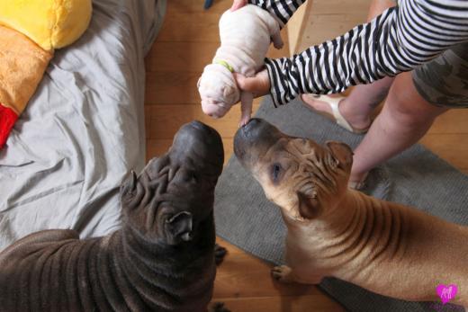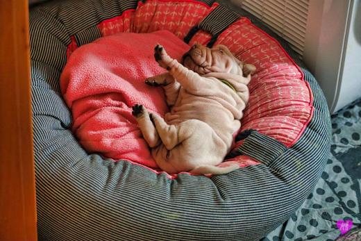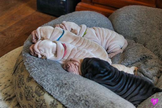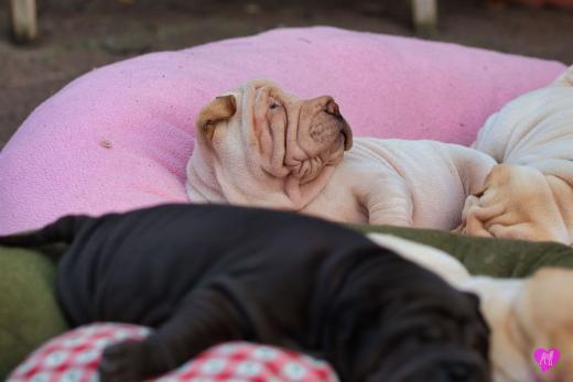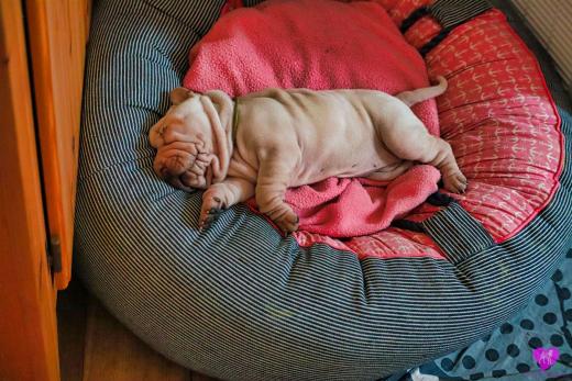 Im Büro war der Boden noch etwas rutschig für die Kleinen. Andrea dachte es ist eine gute Idee, die Kleinen mal in das alte Monki-Schlaf-Bötchen zu legen. Sofort eingeschlafen. Super. Monki weiß noch nicht so richtig. Begeisterung sieht anders aus. Ich glaube seinen fragenden Blick gesehen zu haben: "Wann ziehen die aus?" Die Äuglein der Kleinen gehen auch langsam nach und nach auf. Natürlich nicht wenn sie schlafen. :-) Alle toll entwickelt und sehr ausgeglichen. Das Rudel mag die Kleinen sehr <3 Herz erwärmend zu sehen <3