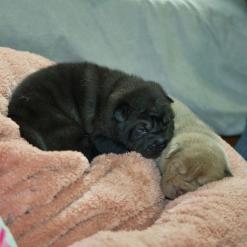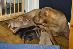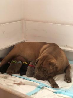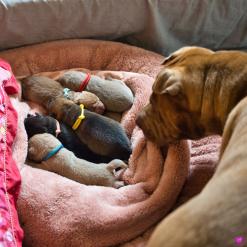 In der Nacht von 4:30 bis 10:00 Uhr ist der E-Wurf mit DREI Mädchen und DREI Jungs angekommen. Alle sind wohlauf. Lucy ist platt, aber ihr geht es den Umständen entsprechend gut.