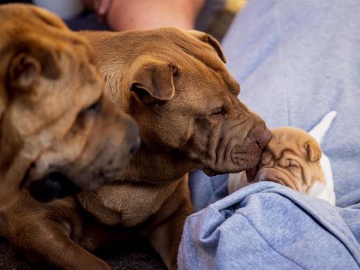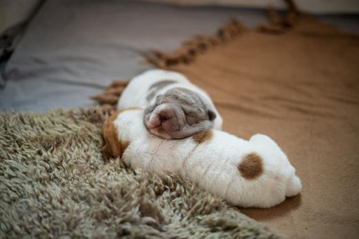 auf dem Kissen gefällt es denen. Wie allen Welpen :-)