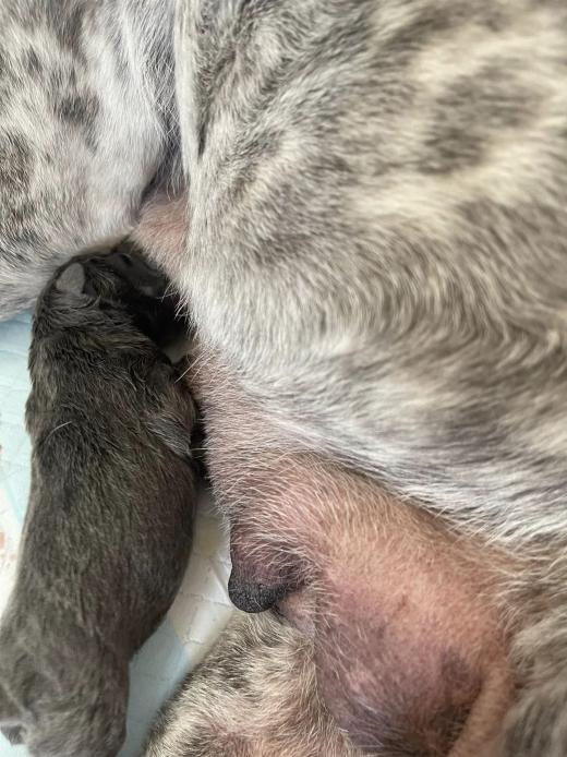 Bran von den Faltigen Herzen (aus dem zweiten B-Wurf), der bei Kristina und Séan O'Donoghue lebt und Maple hatten im Dezember einen erfolgreichen Deckakt, und heute wurden erfolgreich drei gesunde Welpen geboren. Alle (Mutter und Welpen) sind wohlauf.