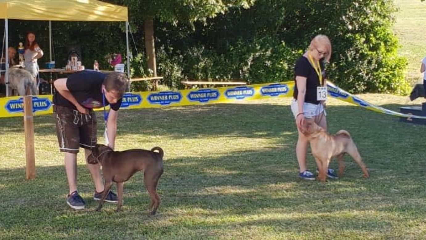 Es war ein wundervoller Tag mit Euch allen... Wir waren auf der Ausstellung in Bayern, diesmal mit drei eigenen Hunden, und drei Hunden aus unserer Zucht. Eine super Veranstaltung mit bestem Wetter. Es waren faire Richter und viele andere tolle Teilnehmer auf der Show. Es gab drei Sonderringe mit Amerikanischen Zwergdackeln, Golden Retriever und Shar Pei. Die Richter waren ganz begeistert von unserer Zucht und meinten sie hätten noch nie so viele Hunde aus einer Zucht ausnahmslos mit einer so guten Gesundheit gesehen. Alle makellos gesund. Und so haben wir dann diesmal auch ganz besonders viele Preise erhalten können. Wir haben insgesamt 28 Auszeichnungen für die Hunde aus unserer Zucht bekommen.