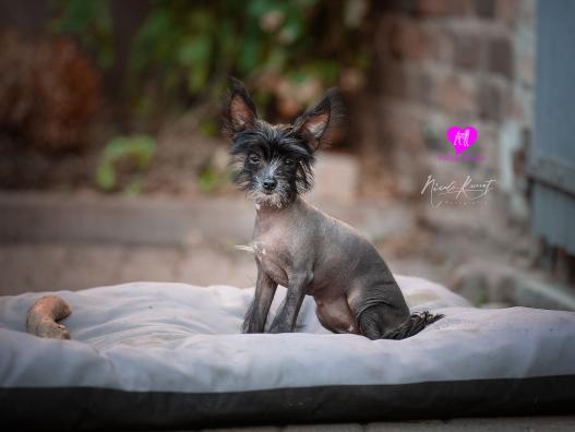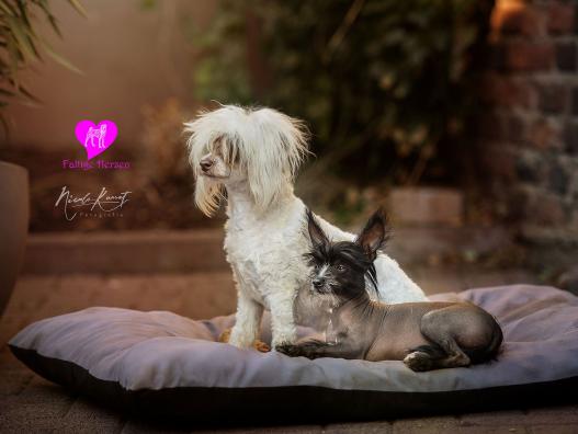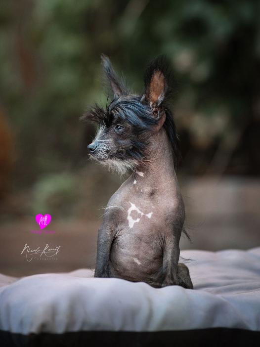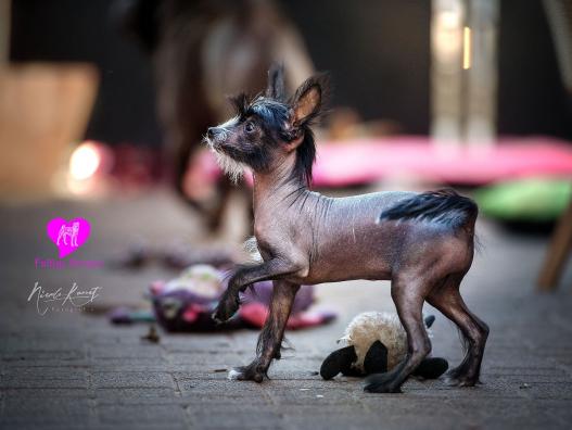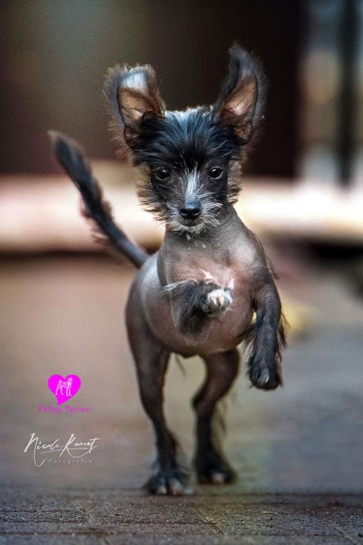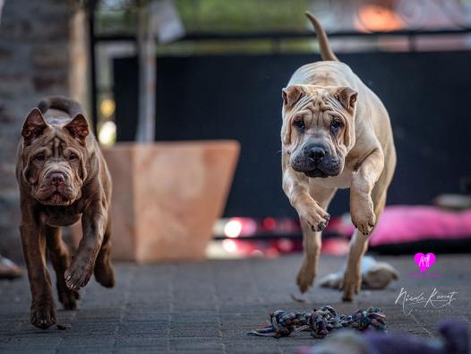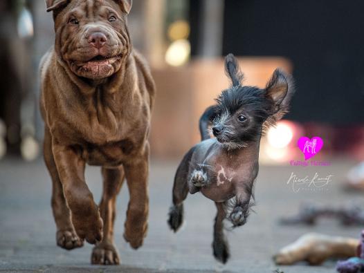 Ich bin ja dreimal so schnell wie du. Und Du schielst ja noch dazu. Dir hängt ja bald schon die Zunge raus, während ich nur so über den Boden fliege. Komische Rasse seid ihr Faltenhunde. Dann bin ich doch lieber ein Nackhund, ein Chinesischer.