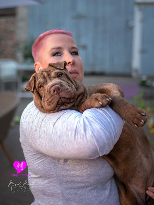 Muss das denn sein? Ich bin kein Schoßhund. Mach schnell Nicola, ich will wieder runter, spielen.