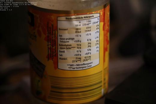 Somit hat man aber zwei Vorteile: Einmal wird fast die gesamte Fläche vom Vollformat nutzbar gemacht und zum anderen erhält man eine Blende Lichtgewinn durch die Bündelung des Lichtes. Rein rechnerich hat man immer noch einen geringen Cropfaktor von 1,6 x 0,71 = 1,136, der nur die Randbereiche sehr schmal bescheidet, was bei Zoom Objektiven aber durchaus von Vorteil sein kann, da diese in den Randbereichen oft Schwächen haben. Die effektive Brennweite eines 24-105mm Objektives verändert sich dadurch also nur minimal zu einem 27-119mm Objektiv. Aber ein Blende f2.8 Objektiv wird damit etwa zum f2.0 (genau 1,988) Objektiv!