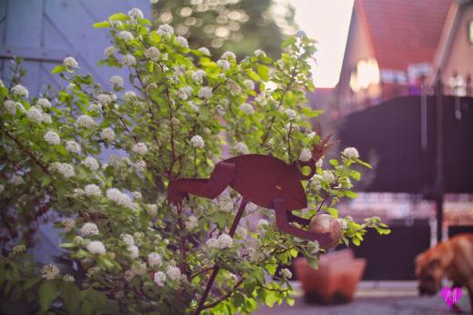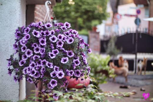 Neelix schaut einer Biene ganz genau in die Augen. Schnappschuss. Denn eigentlich hatte ich die Schärfe Ebene auf die Blumentöpfe eingestellt, sonst wäre die Biene "gestochen" scharf gewesen. So ist die Biene leider etwas unscharf.
