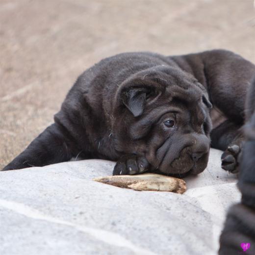 So klein und schwarze war Awi auch mal. Als "schwarzes Schaf" neben den vier hellen C-Wurf Welpen :-)