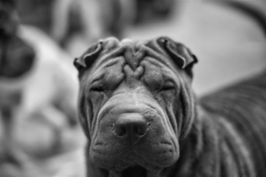 Chinese Shar Pei in black and white.