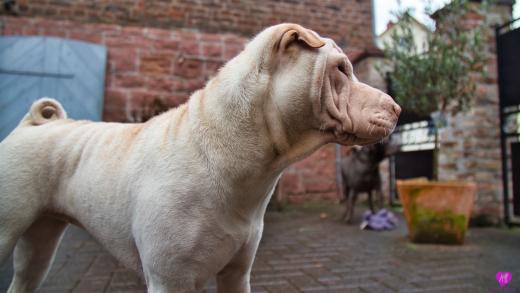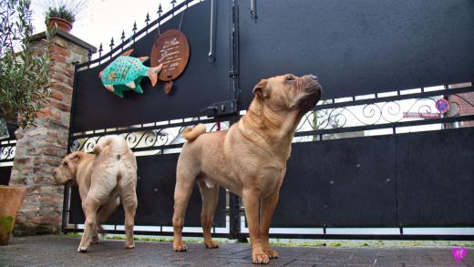 am Tor. Ich glaube sie "diskutiert" mit ihrem Vater. Er möge ihr doch endlich IHR Spielzeug wieder geben. Das sieht Cooper nur ganz anders :-)