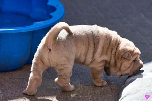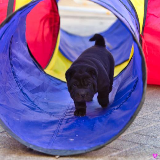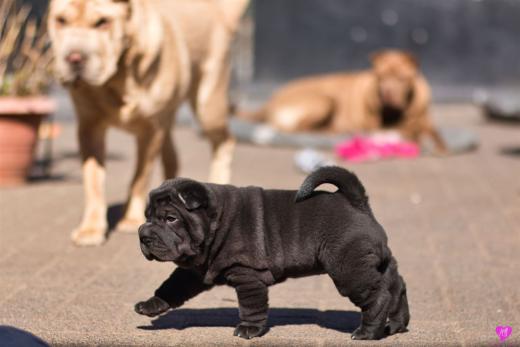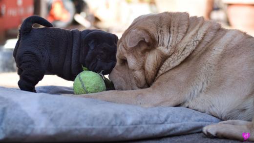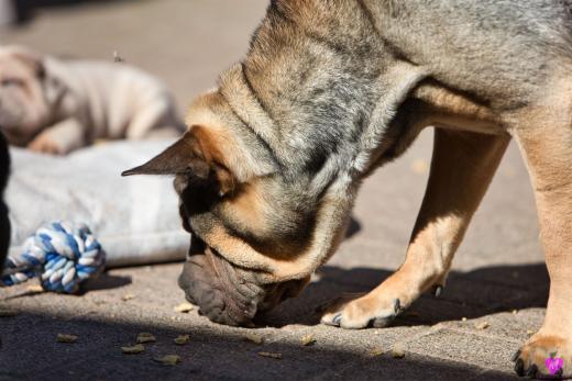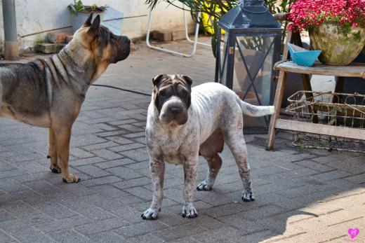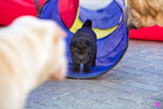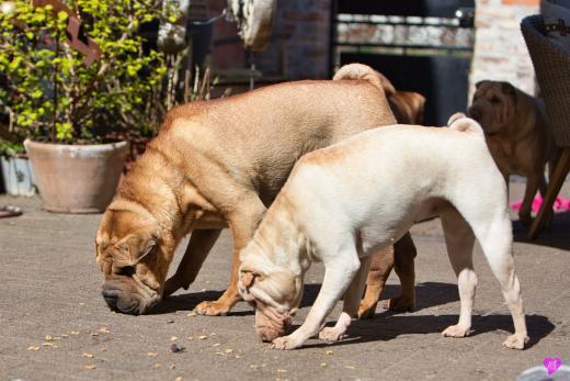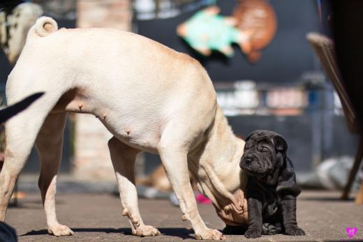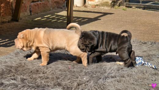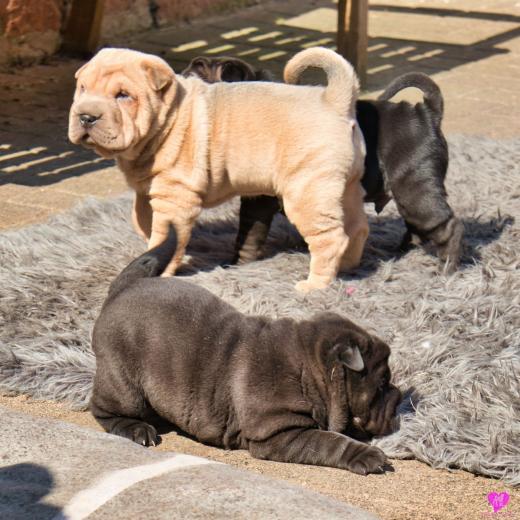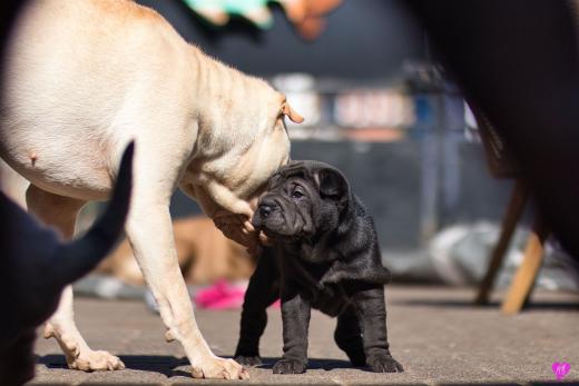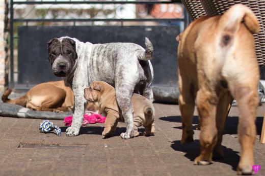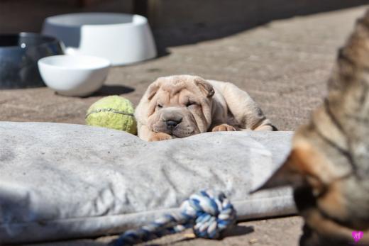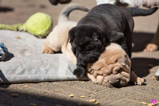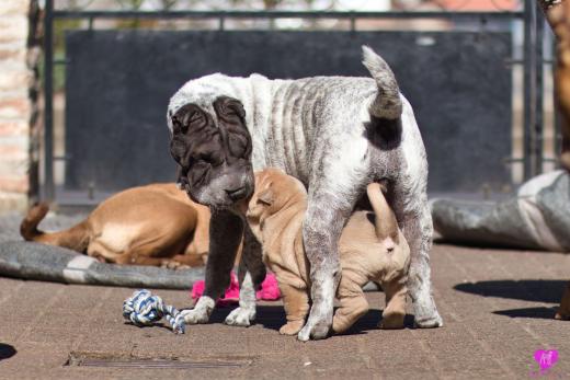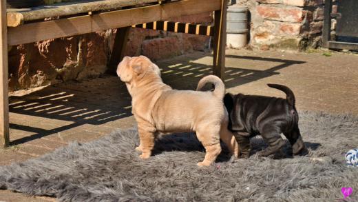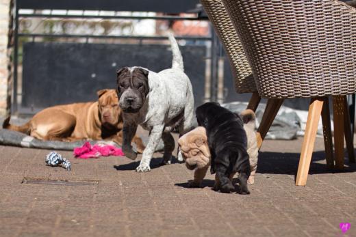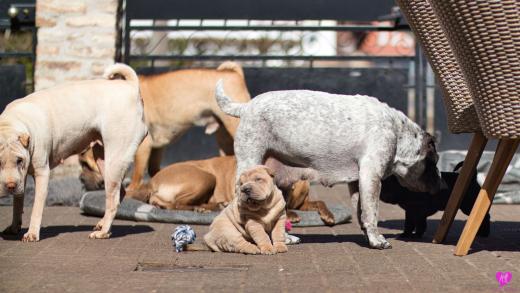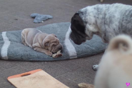 Mit sommerlichen Temperaturen von bis zu 26 Grad in der Sonne hatten wir viel Spaß im Hof und im Garten. Zum Glück ist unser Hof immer zeitweise im Schatten, so das die Welpen das tolle Osterwetter auf dem Hof genießen konnten. Es sind jetzt schon richtige kleine Hunde. Sie erkunden neugierig die Welt und sammeln ihre Erfahrungen mit unseren doch sehr charakterlich unterschiedlichen Hunden im Rudel. Das ist für die Sozialisierung so wichtig.