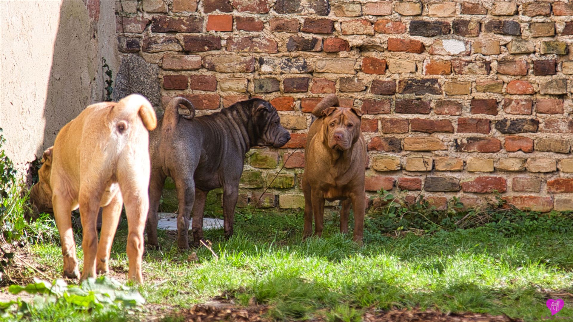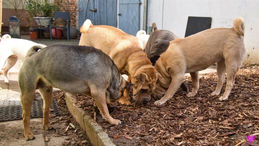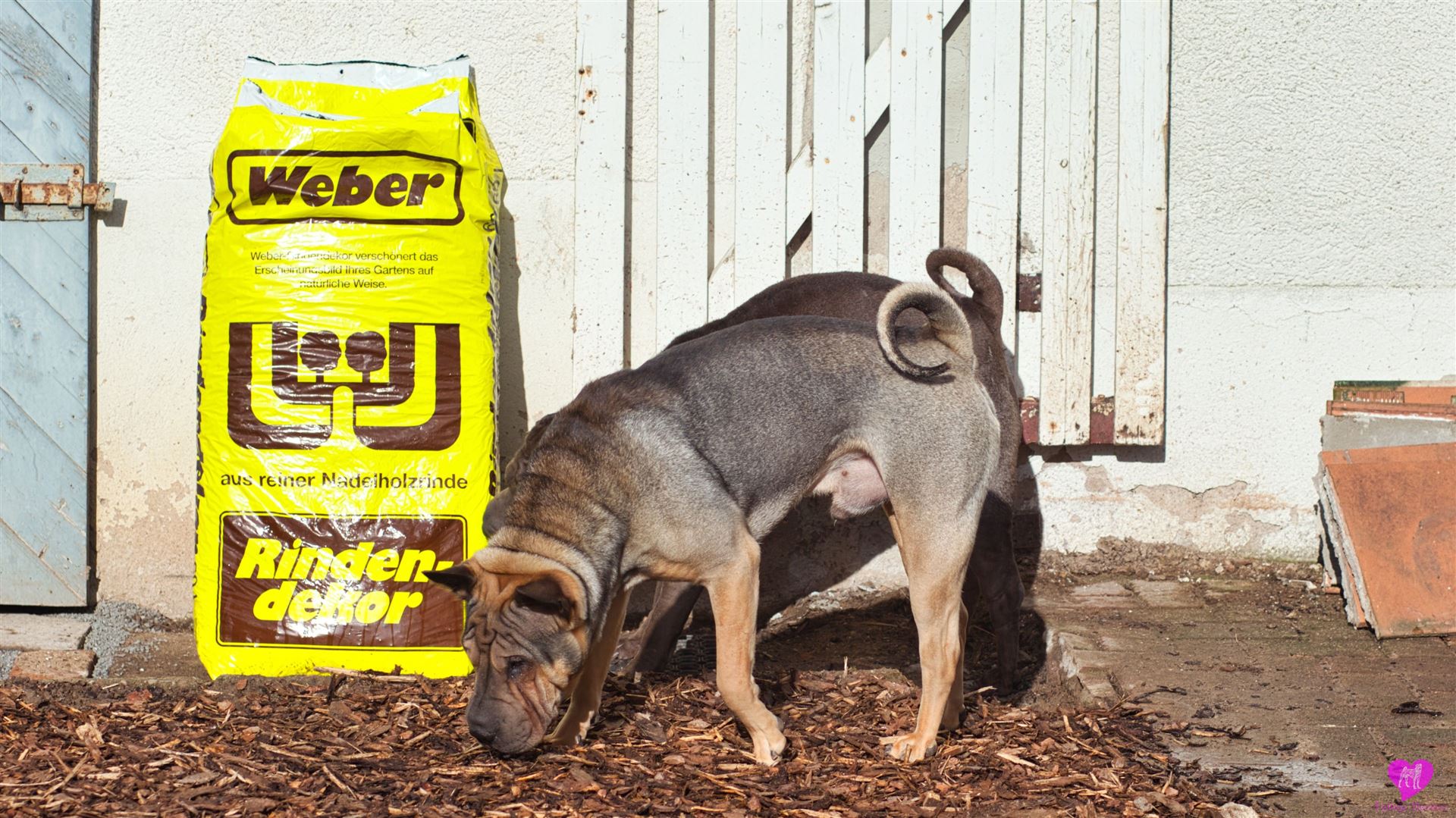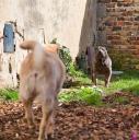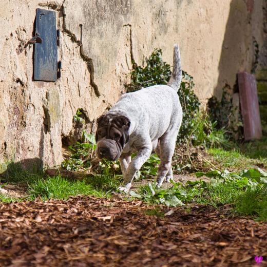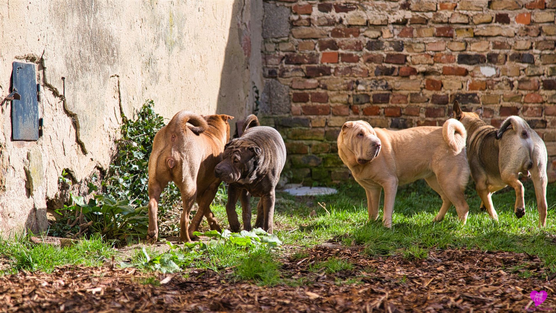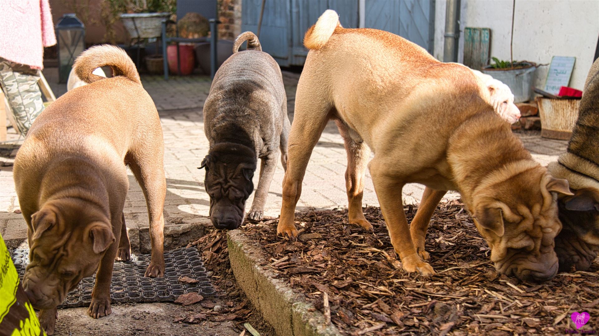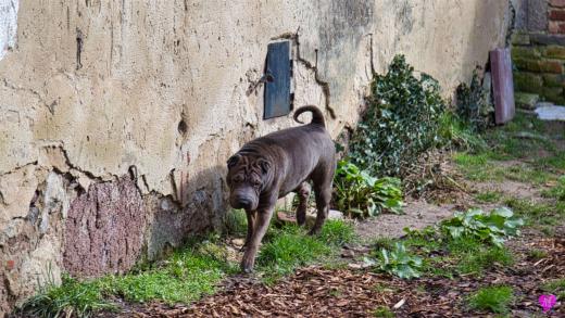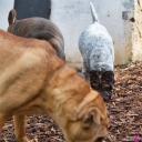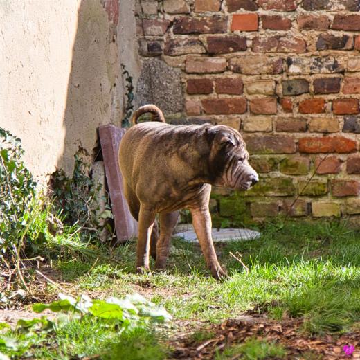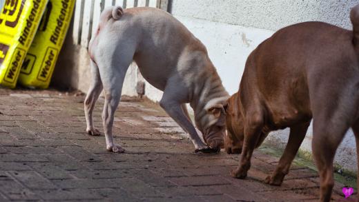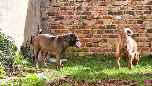 Nachdem die einwöchigen Bauarbeiten mit Bagger - Anschluss der Scheune, Kanalisation, Wasser, Heizung, Strom - abgeschlossen sind, was die Rotte mit großartiger Gelassenheit über sich ergehen lassen hat, mussten sie das "neue" Gelände, erst mal wieder erkunden. Und unsere Mauer ist auch weg, die bisher den Garten vom Hof abgetrennt hatte. Die Hunde und wir finden diesen jetzt vollkommen offenen Bereich ganz toll. Aber erst mal muss alles aufs gründlichste erschnüffelt werden :-)