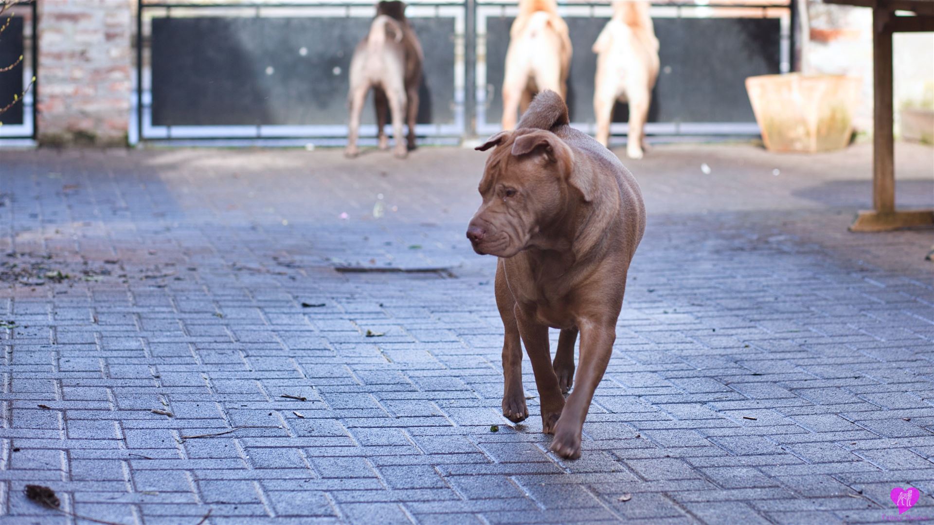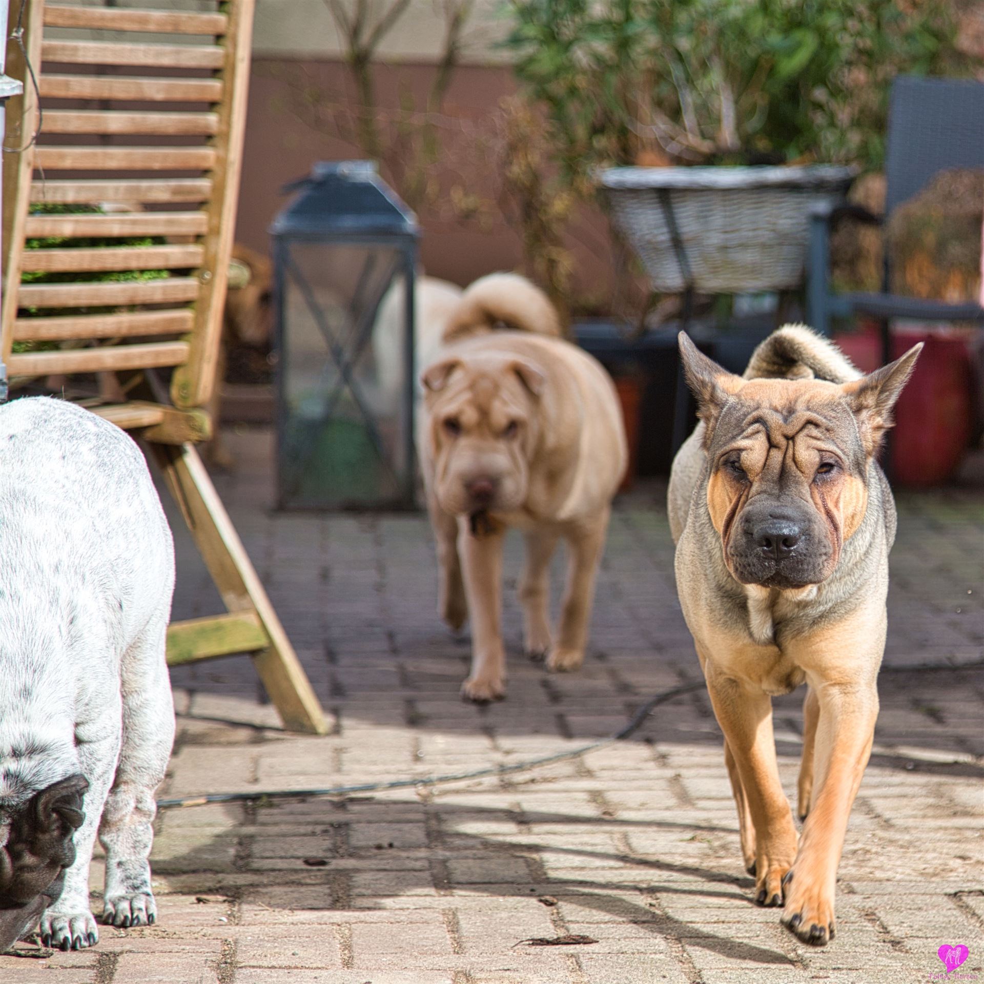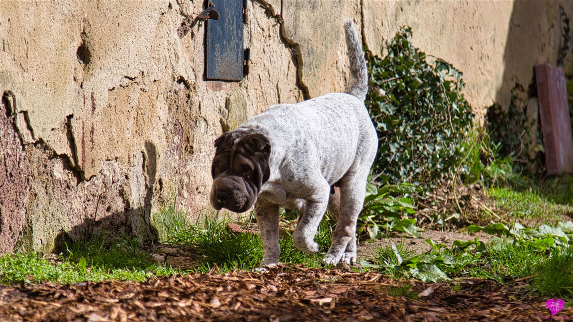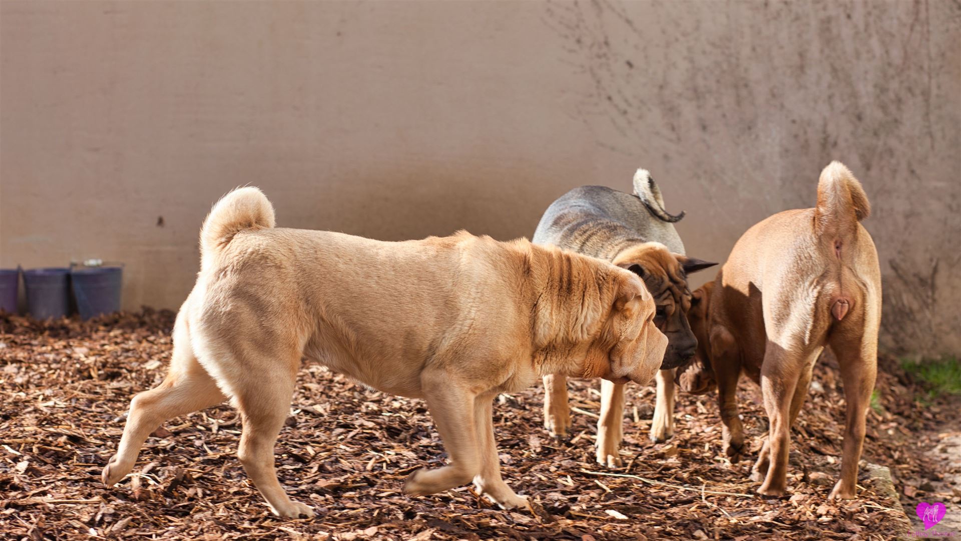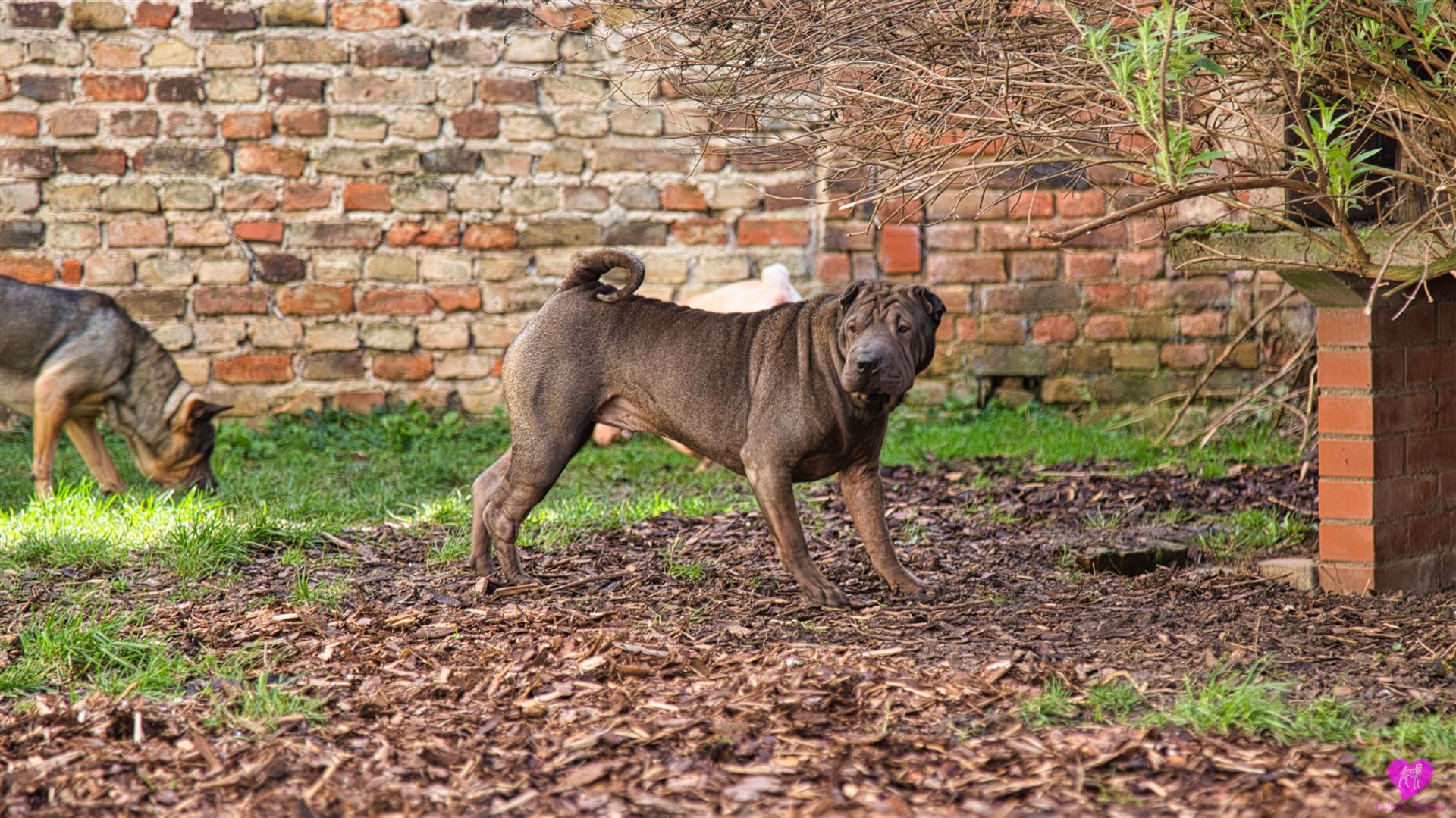 Nachdem die einwöchigen Bauarbeiten mit Bagger - Anschluss der Scheune, Kanalisation, Wasser, Heizung, Strom - abgeschlossen sind, was die Rotte mit großartiger Gelassenheit über sich ergehen lassen hat, mussten sie das "neue" Gelände, erst mal wieder erkunden. Und unsere Mauer ist auch weg, die bisher den Garten vom Hof abgetrennt hatte. Die Hunde und wir finden diesen jetzt vollkommen offenen Bereich ganz toll. Aber erst mal muss alles aufs gründlichste erschnüffelt werden :-)