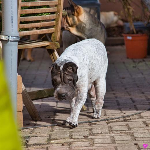 Die bewegt sich sehr viel, obwohl in den nächsten Tagen die Welpen kommen.