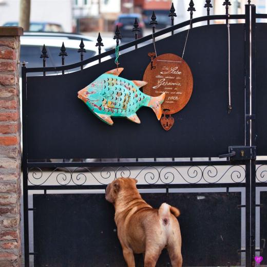 Wieder auf seinem Lieblingsplatz. Die Bank am Tor.