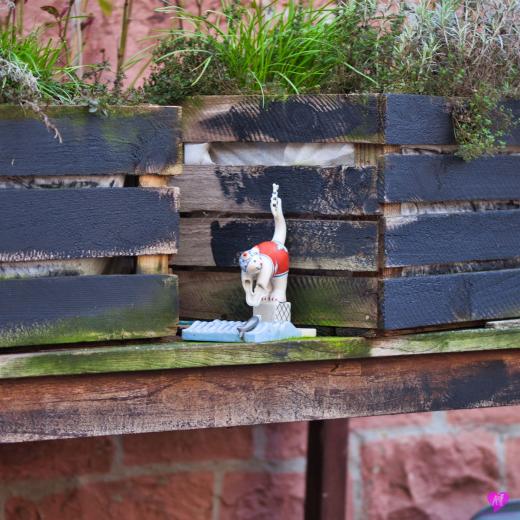 Unsere Katze wacht am Kräutergarten.