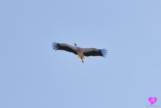 Und ein Storch fliegt über dem Hof