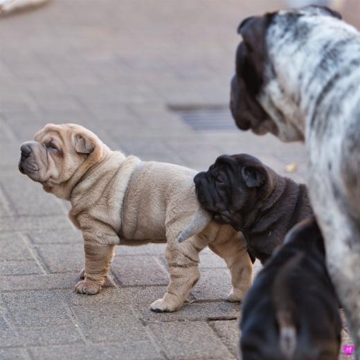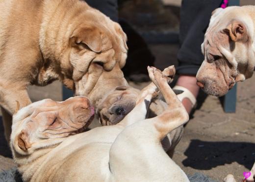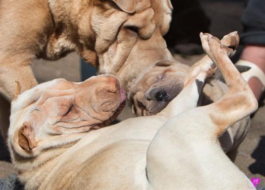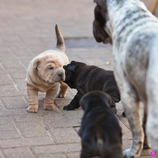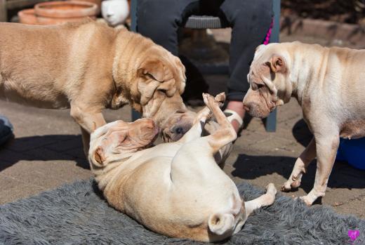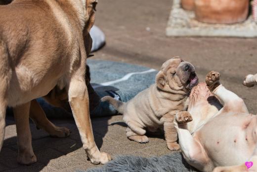 Titelbild: "Mini Hamster greift an". Es ist immer wieder unfassbar wie sich so kleine erst vier Wochen junge Welpen ins Rudel integrieren und von allen für voll genommen werden. Faszinierend.