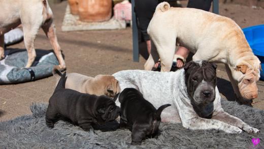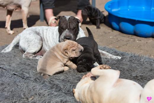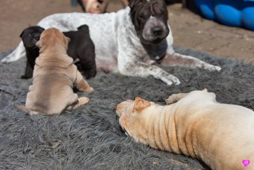 Maple und ihre Welpen