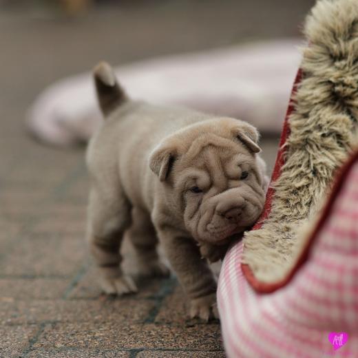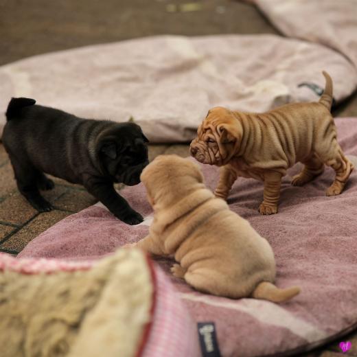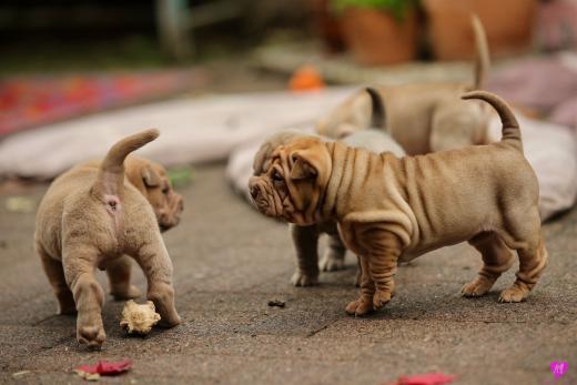 Welpen Freilauf auf dem Hof. Die sind schon ganz schön mobil und agil. Kleine, freche Bande. Die ganzen herbstlichen Blätter auf dem Hof fanden sie alle sehr interessant.