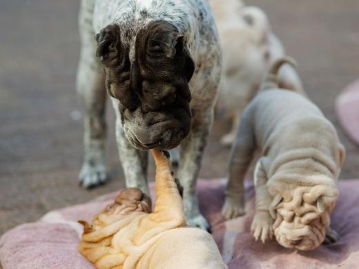 „…und dieses possierliche Tierchen nennt man einen seltenen zwigeschwänzten, achtfüßigen Doppelkopf Janus Pei. Eine ganz seltene Unterart…“