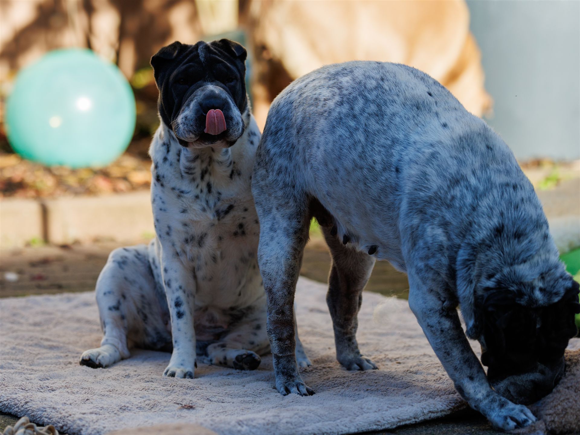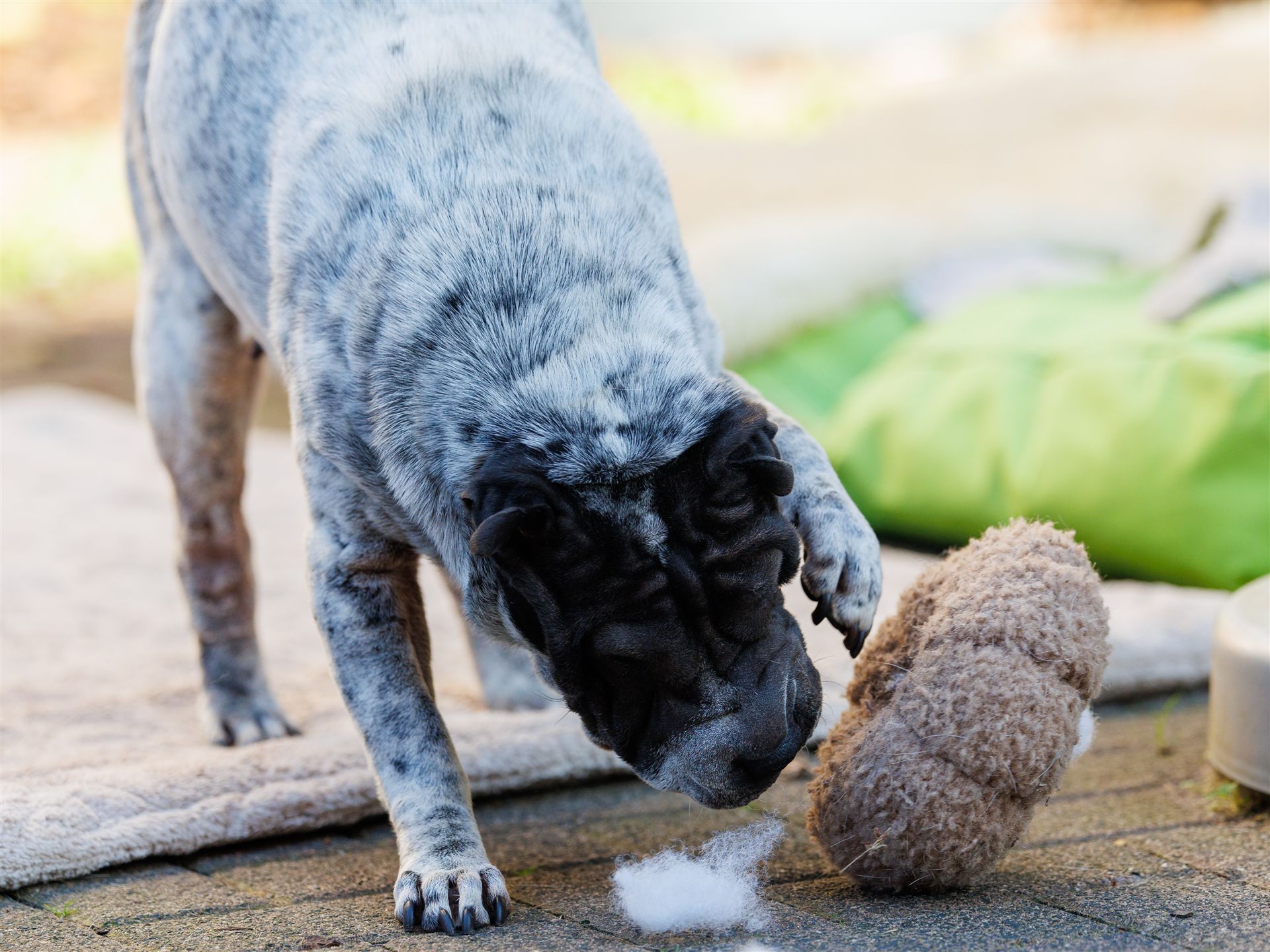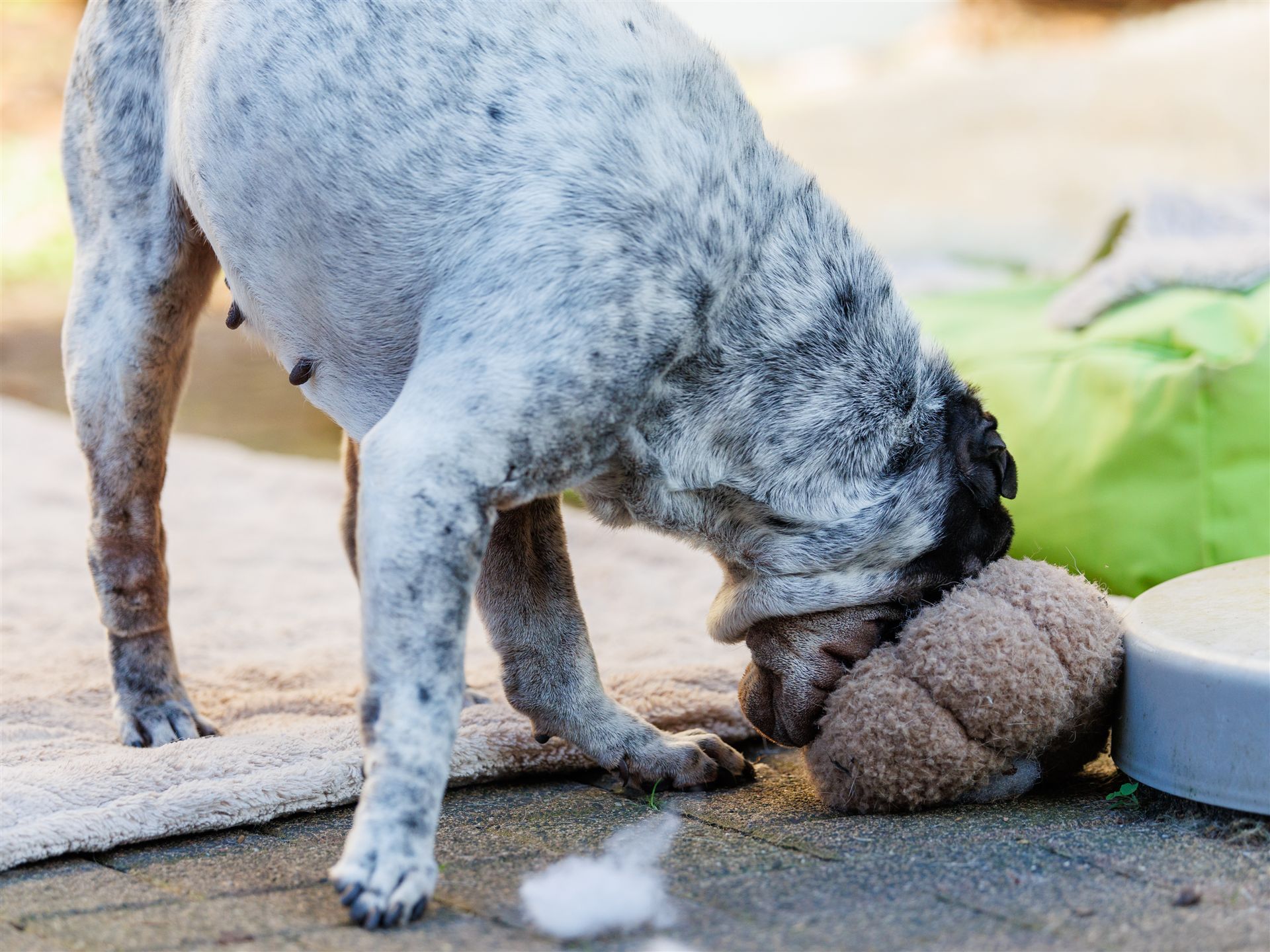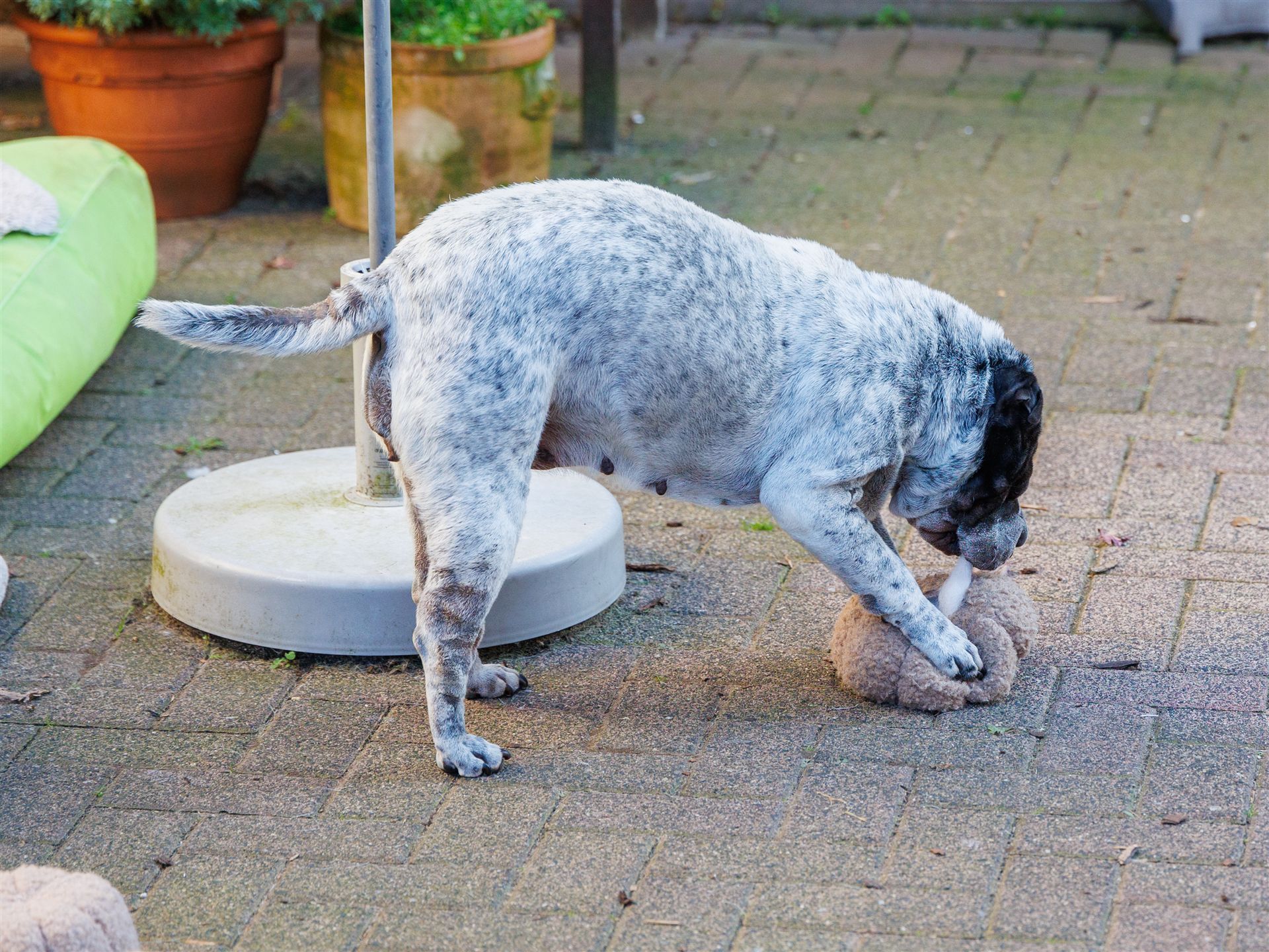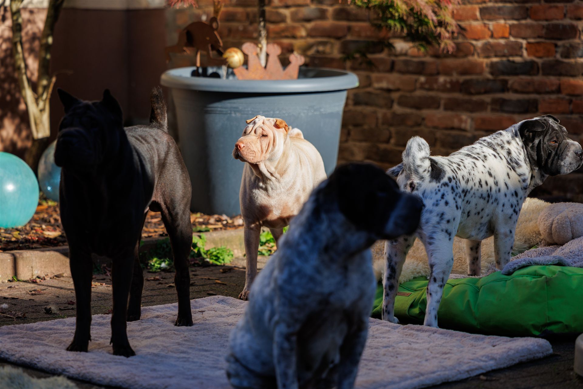 Maple spielt wie verrückt mit einem Stoff-Decko-Kürbis, den alle Hunde lieben. Das kühlere Wetter gefällt denen so richtig gut. Zudem liegen Hormone in der Luft (2 Mädels sind läufig) und die sind alle miteinander so richtig gut drauf.