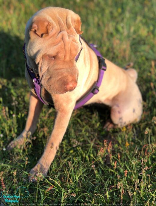 Man hört oft, Shar Pei wären eher stur und schwer erziehbar. Bei meiner Schwester mag das stimmen, hihi. Aber eigentlich sind wir so richtig vielseitig. Also, wenn’s Spaß macht. Und nicht regnet. Der kluge Pei denkt schließlich mit! Warum soll man sich auch aus vollem Lauf ins „Platz!“ werfen, wenn doch die Wiese nass ist?! Würdet Ihr das machen?