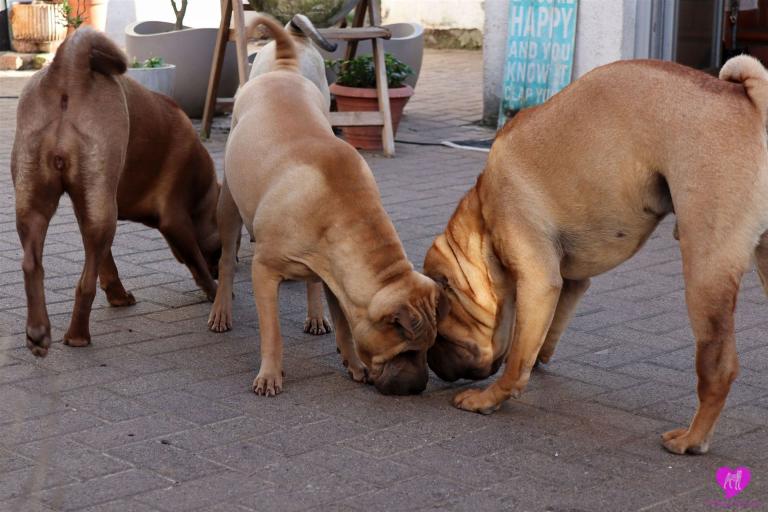 Lucy haben wir aus der Zucht von von Sabina Schumann, die in Österreich ein Gestüt mit Ferienwohnungen und eine Shar Pei Zucht betreibt. Sie war für ihr Alter unglaublich gut sozialisiert und hatte vor überhaupt nichts Angst oder fühlte sich trotz des Umzuges sofort bei uns wohl. Überhaupt ist sie die kommende Rudelchefin. Sie ist eine sehr selbstbewusste Hündin, die sehr in sich ruht. Sie ist eine tolle Hündin mit viel Potential für die Zucht zumal ihre Eltern eine sehr gute Gesundheit vorweisen können und frei von Shar Pei Fieber sind. Bei einer kommenden Zuchtprüfung von Lucy wird sich noch herausstellen, ob Lucy eventuell N/N sein wird, die Wahrscheinlichkeit ist mit 75% dafür sehr hoch.