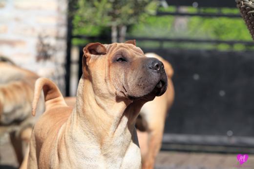 Ella haben wir von Sabina Schumann, die in Österreich ein Gestüt mit Ferienwohnungen und eben eine Shar Pei Zucht betreibt.