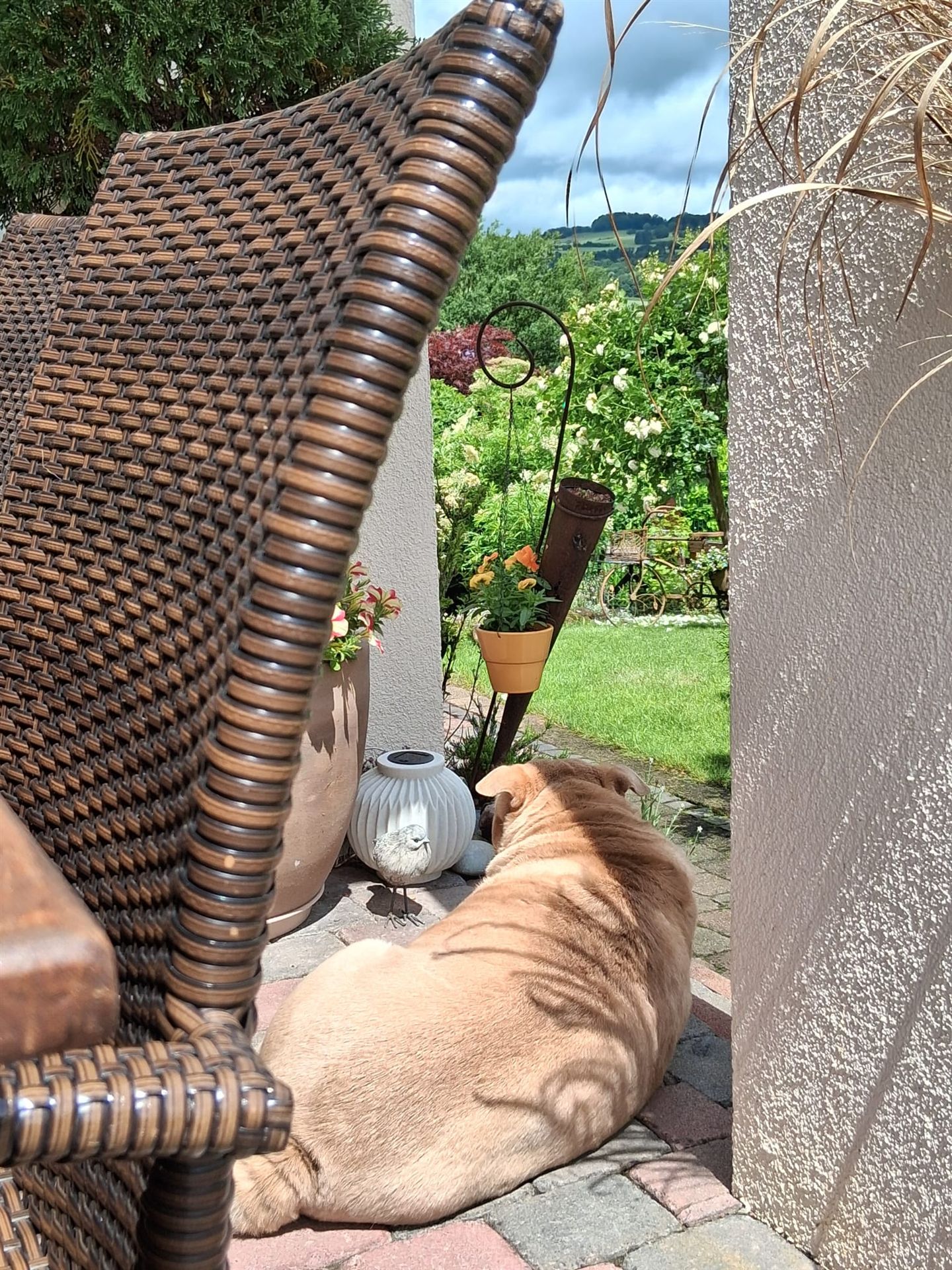 LeeLoo eine sehr charmante und wirklich immer freundlich und gut gelaunte Pei Dame. Auch Fremde begrüßt sie - Shar Pei untypisch - mit viel Freundlichkeit und Zuwendung. Unser "Kugelfisch" - sie schmeißt sich gerne vor Freude auf den Rücken und kugelt auf dem Boden. Sie hat sich toll entwickelt und eine feste Führungsposition im Rudel gefunden.
